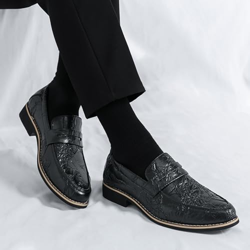 More information about Men's Leather Printing Chunky Heel Formal Loafers Classic Round Toe Slip-On Comfort Soft Sole Penny Dress Shoes for Party Wedding Business Daily