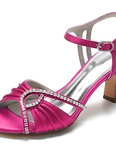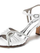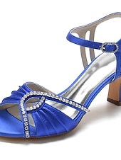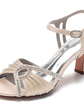 Highlights [Fabric] The evening sandal is crafted from luxurious satin for a sophisticated and elegant appearance. The lining is made of high-quality leather, ensuring comfort throughout wear. [Style] Featuring a trendy peep toe and a mid-height chunky heel, these shoes offer a chic silhouette with a fashionable and luxurious vibe. The design provides the right amount of height for elegance while ensuring stability and ease of movement. [Design Highlights] The sandal boasts a delicate criss-cross strap adorned with sparkling rhinestones and glitter, adding a glamorous touch of shine. The adjustable ankle strap with a sleek buckle fastening ensures a secure and customizable fit. [Occasions] Ideal for weddings, parties, or elegant gatherings, these sandals are perfect for making a statement at any formal event. Their blend of elegance and comfort makes them suitable for spring and summer celebrations, providing style without compromising on wearability. [Size Range] Available in sizes from US6 / EU36 / UK4 to US11.5 / EU43 / UK9.5. For the best fit, choose your usual size as these shoes are designed to standard sizing specifications.