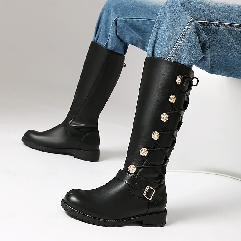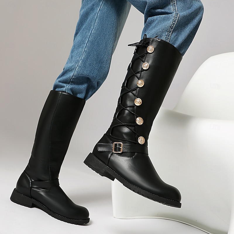 More information about Men's Black Knee-High Boots with Gold Button Details – Sleek and Stylish, Great for Semi-Formal and Trendy Occasions