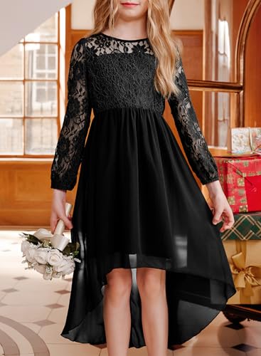 blibean Girls Long Sleeve Fall Dresses 2025 Flower Girl Lace Formal Wedding Party Dress Size 6-15 Years 5