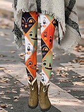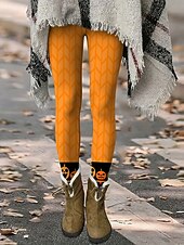 More information about Women's Leggings Vacation Vintage Fashion Full Length High WaistPantsHalloween Graphic Animal Pumpkin Printing Thermal Warm Soft Breathable Stretchy Formal Outdoor Vacation Black Yellow Orange Spring
