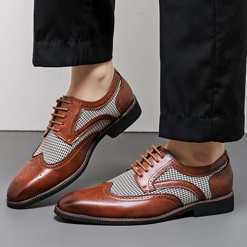 Men's Leathe Patchwork Two Tone Color Brogue Oxfords Classic Lace Up Comfortable Chunky Heel Dress Derby Shoes Hand Stitched Business Formal Work Gatsby Shoes 6