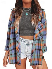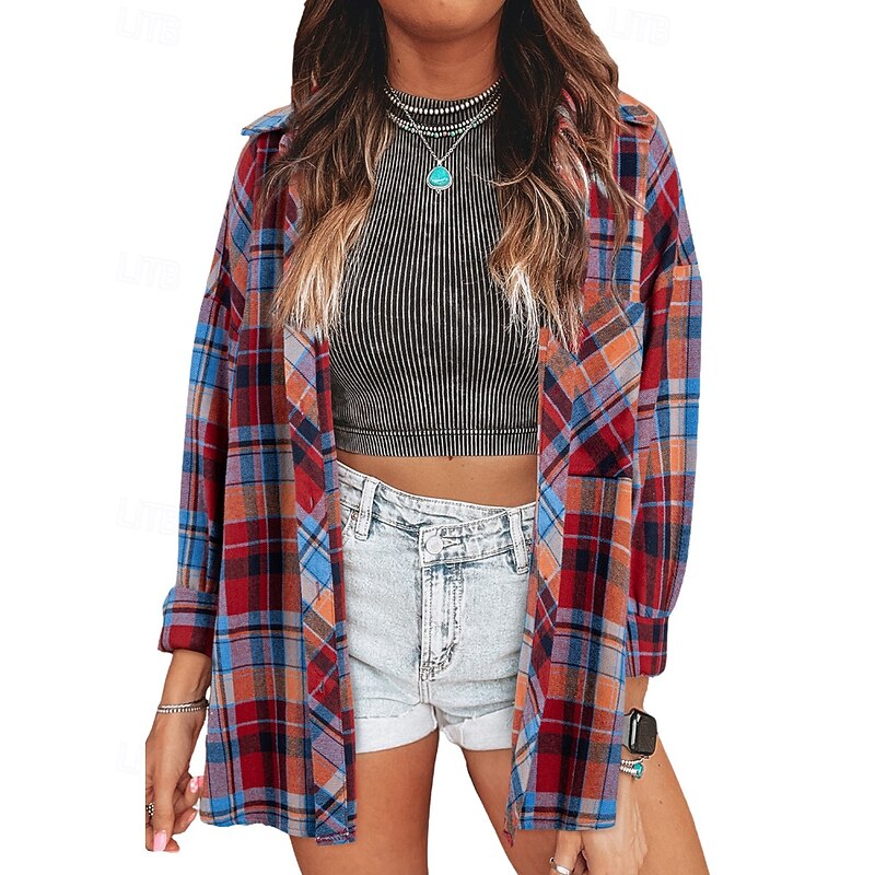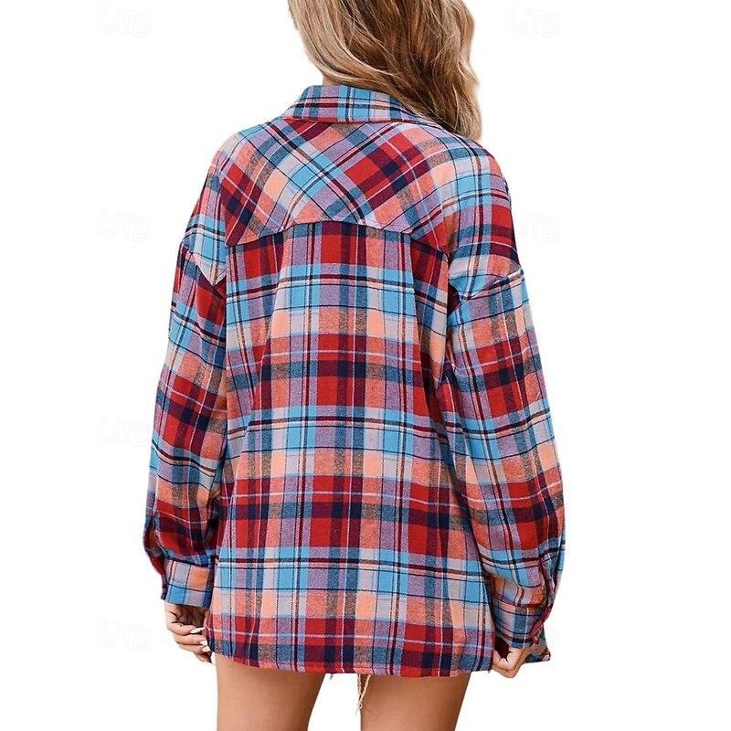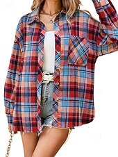 More information about Women's Shirt Blouse Plaid Modern Casual Long Sleeve Shirt Collar Regular Tops Daily Holiday Going out Pocket Buttons Red Blue Fall