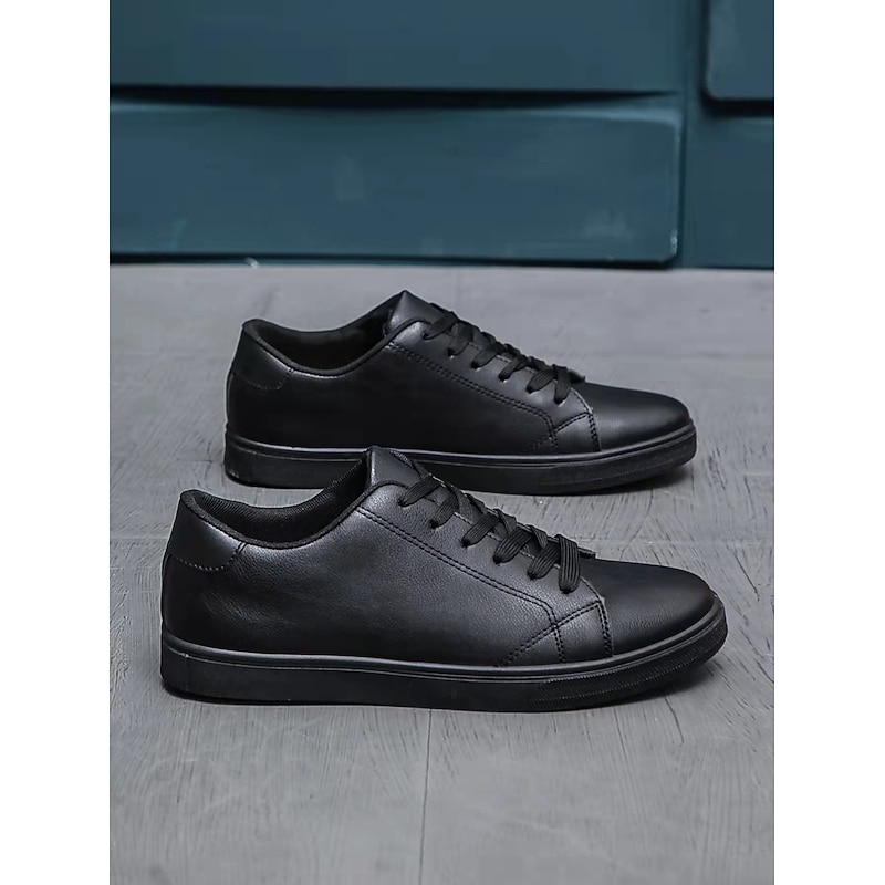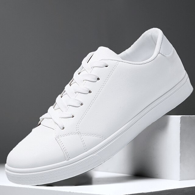 Highlights [Fabric & Materials] : Designed with high-quality faux leather, these sneakers offer durability and easy maintenance. The soft fabric lining inside ensures breathability and comfort, making them suitable for extended wear. [Style & Fit] : With a classic low-top silhouette and sleek, minimalist design, these sneakers present a contemporary casual style. The lace-up closure provides a secure fit, and the padded collar and tongue add extra comfort around the ankle, perfect for both men and women. [Design Highlights] : Featuring a solid-colored pattern, these sneakers come with a sturdy rubber outsole that provides excellent grip and traction on various surfaces. The timeless white and black color options cater to different style preferences, adding versatility to your wardrobe. [Occasions] : Ideal for daily activities such as walking, these sneakers transition seamlessly from casual outings to smart-casual settings. They are perfect for spring and fall, providing both style and practicality for various occasions. [Size Recommendations] : These sneakers are available in a wide range of sizes from US6 / EU36 to US11.5 / EU45, ensuring a comfortable fit for a variety of foot sizes. Select your usual size for the best fit.