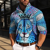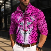 More information about Men's Animal Leopard Long Sleeve Polo Shirts Zip Casual Outdoor Casual Daily Streetwear 3D Print Fall & Winter Yellow Dark Pink Blue