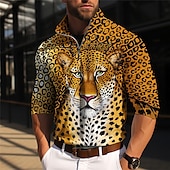 Men's Animal Leopard Long Sleeve Polo Shirts Zip Casual Outdoor Casual Daily Streetwear 3D Print Fall & Winter Yellow Dark Pink Blue 6