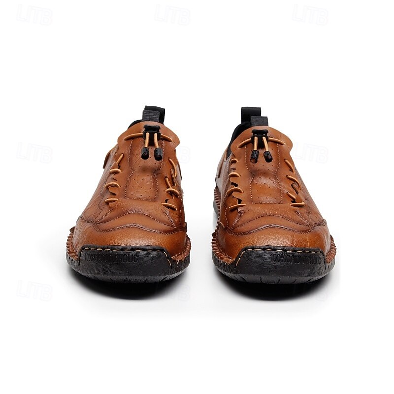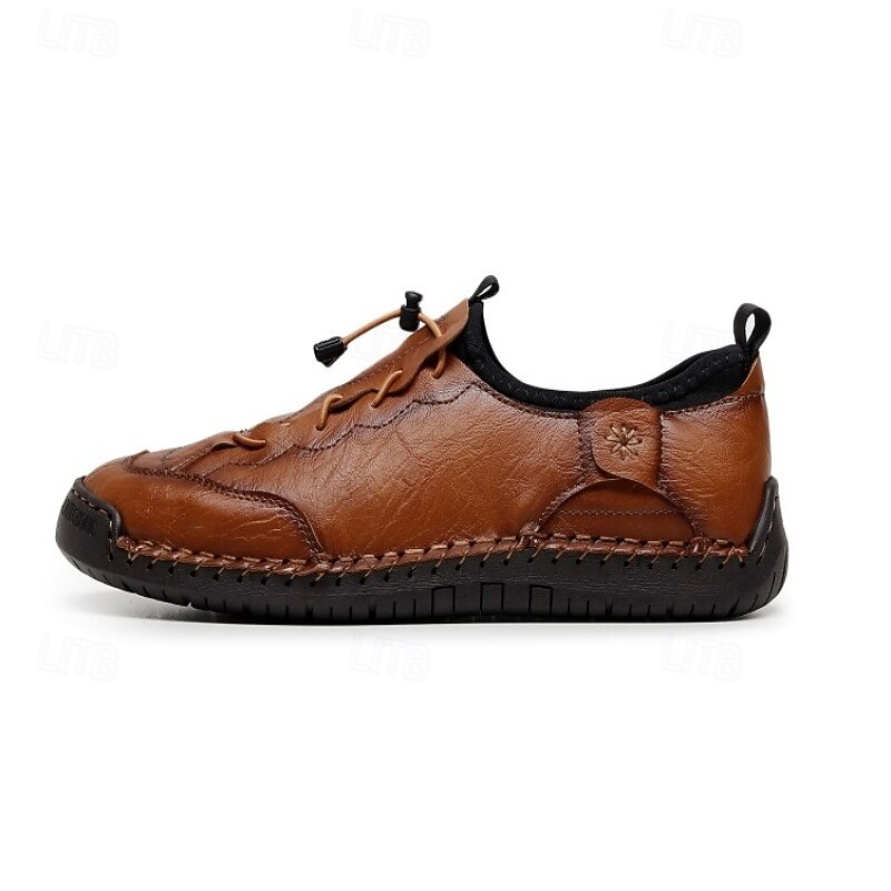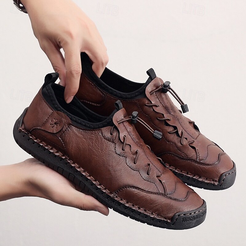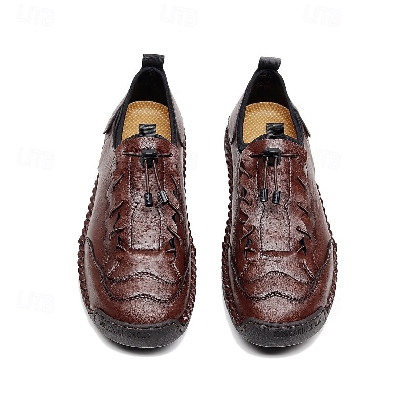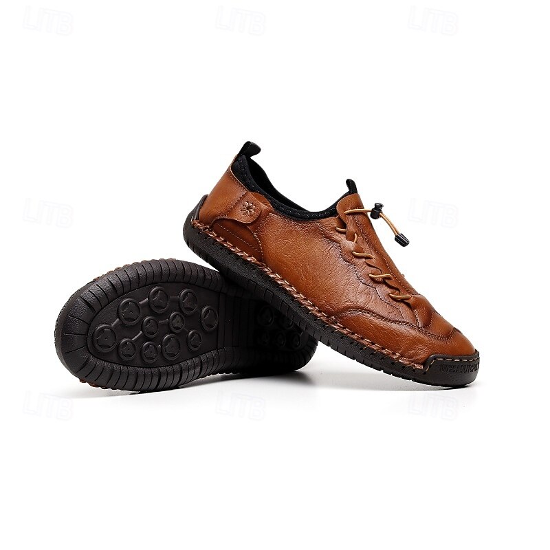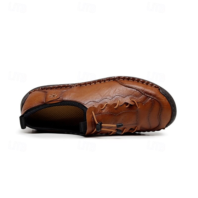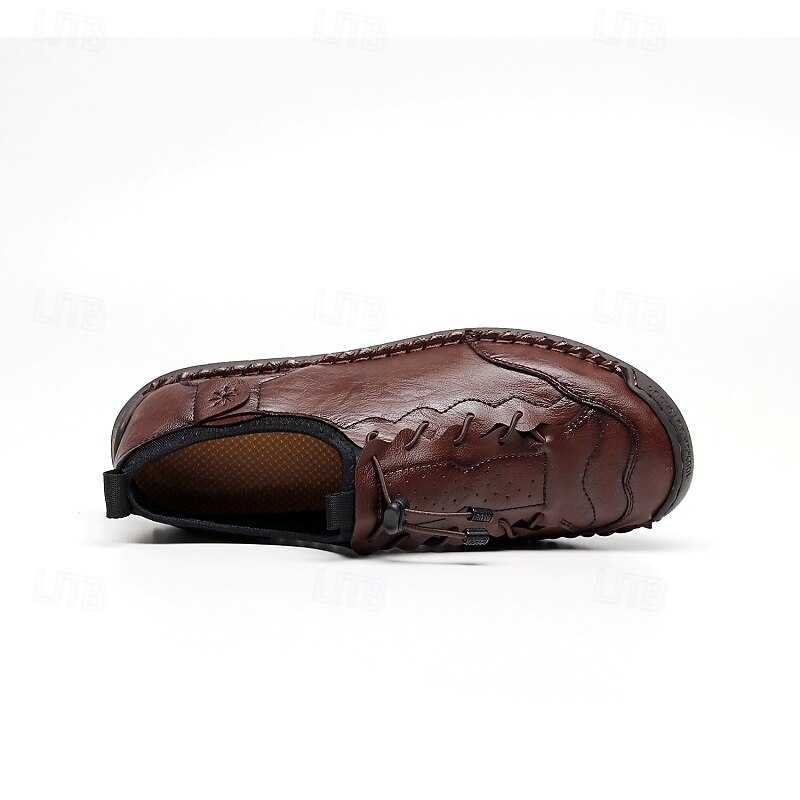 More information about Men's Brown Handmade Casual Shoes with Soft Rubber Sole and Elastic Drawstring, Comfortable Outdoor Driving Loafers for Travel and Daily Wear