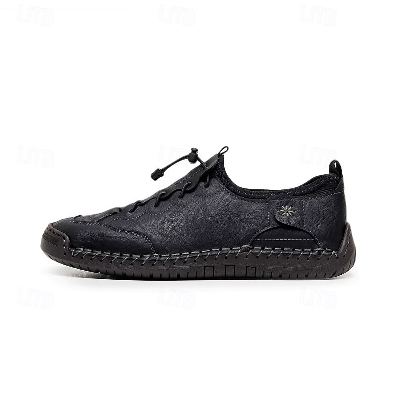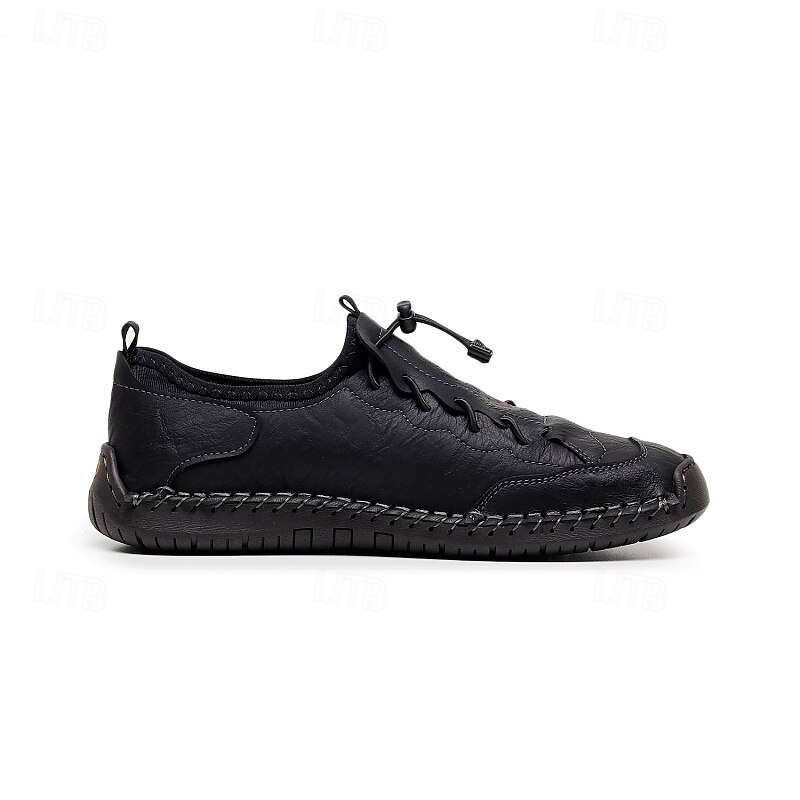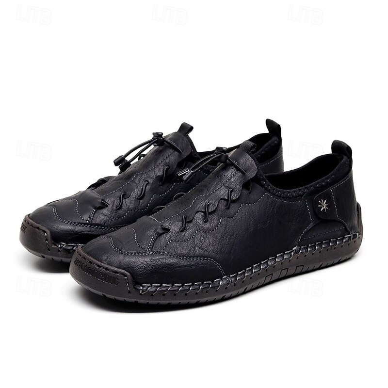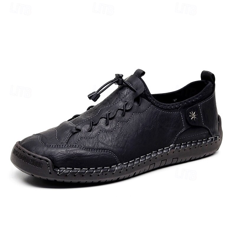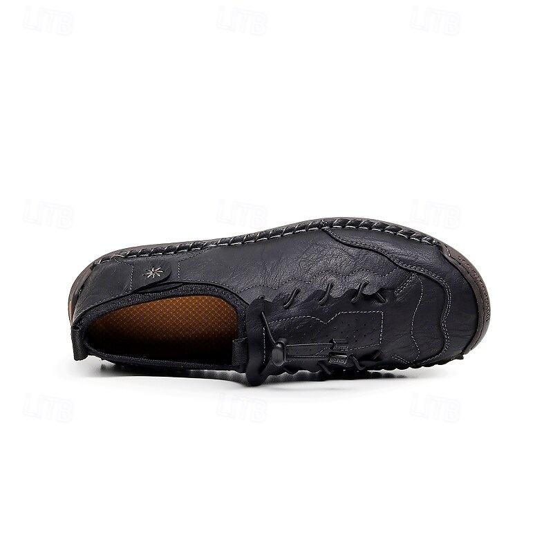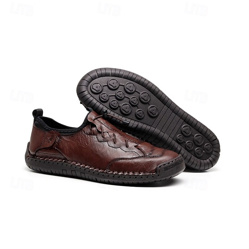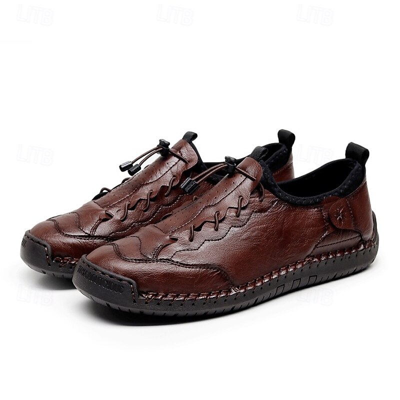 More information about Men's Brown Handmade Casual Shoes with Soft Rubber Sole and Elastic Drawstring, Comfortable Outdoor Driving Loafers for Travel and Daily Wear