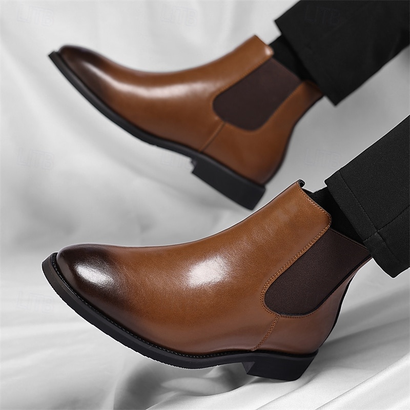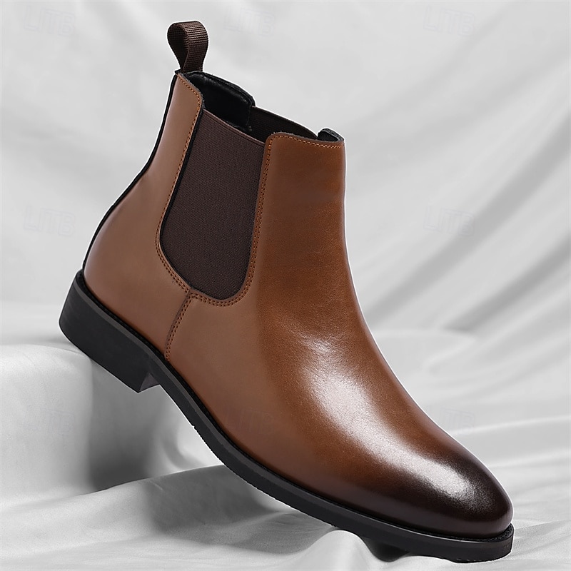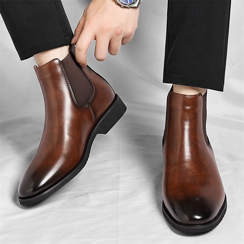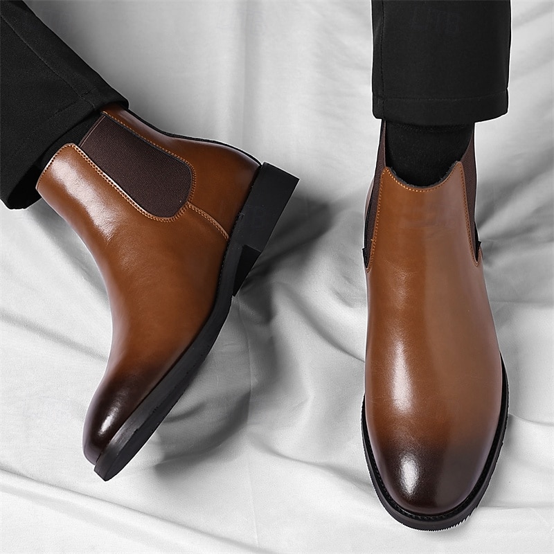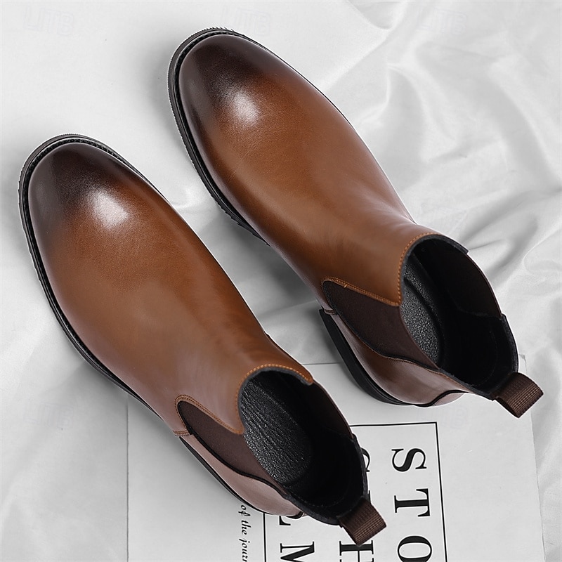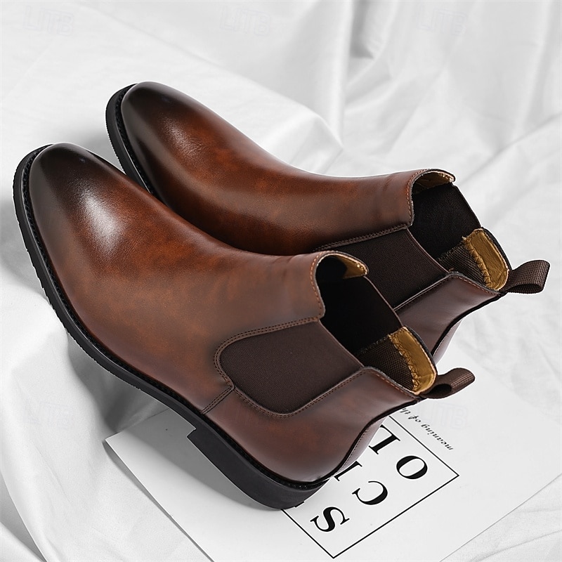 HOT ! Men's Brown Chelsea Boots with Elastic Side Panels Classic Slip-On Design for Business, Formal Events and Daily Wear