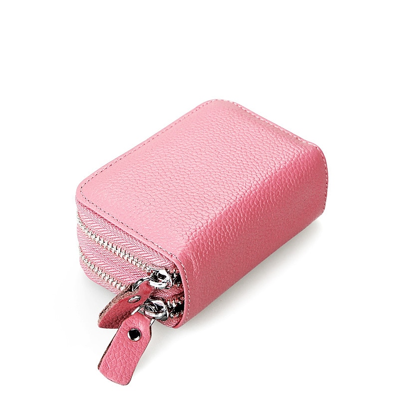 RFID Blocking Leather Coin Purse Twin Golden Metal Zippers Sectioned Concertina 9 Credit Card Case  4 Pocket money Case 30