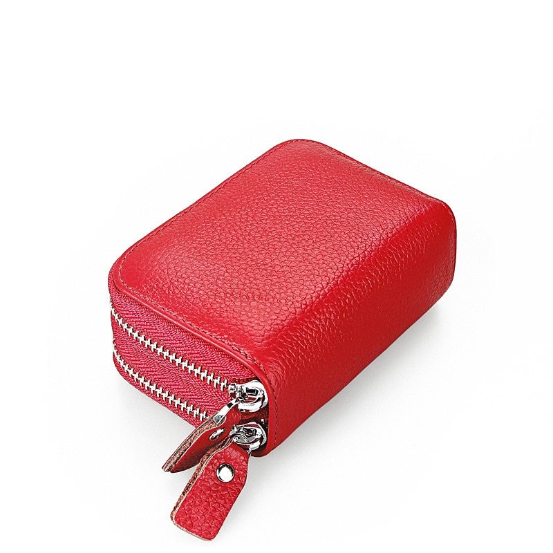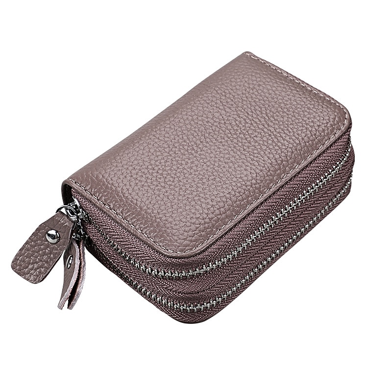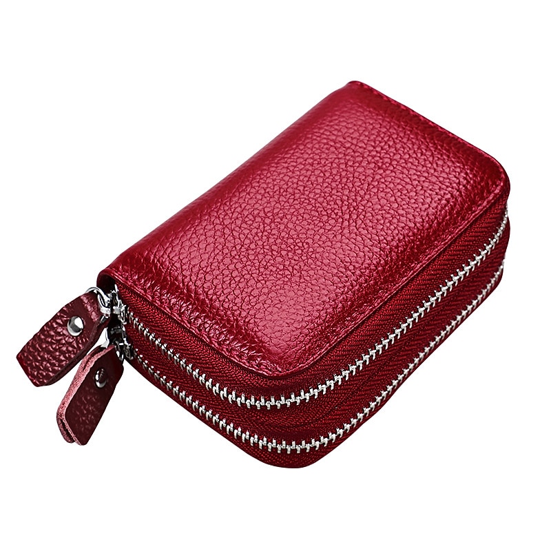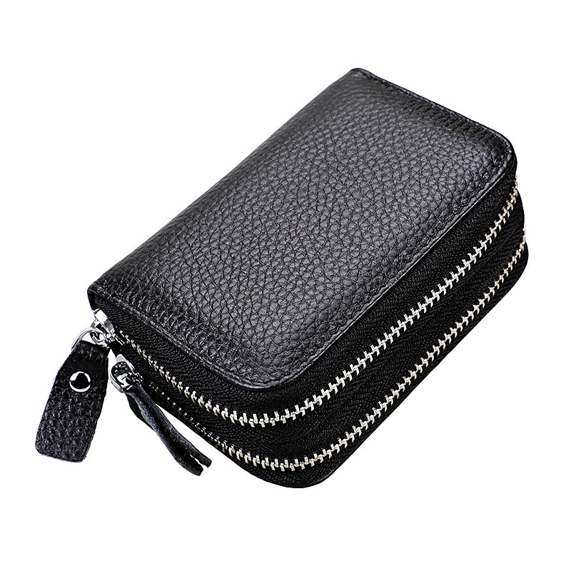 RFID Blocking Leather Coin Purse Twin Golden Metal Zippers Sectioned Concertina 9 Credit Card Case  4 Pocket money Case 4