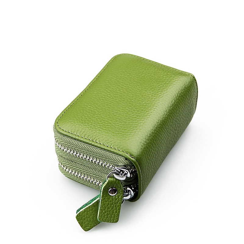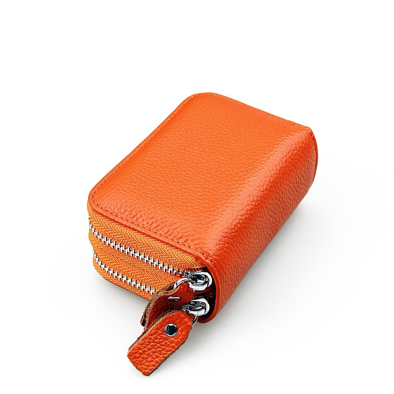 RFID Blocking Leather Coin Purse Twin Golden Metal Zippers Sectioned Concertina 9 Credit Card Case  4 Pocket money Case 32
