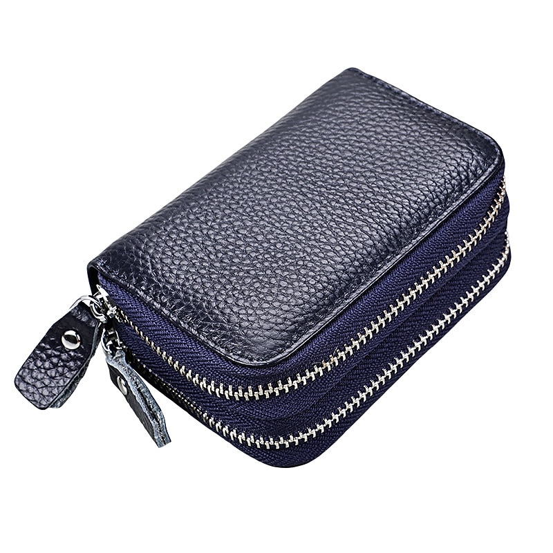 Highlights - 100% Genuine Leather: Made with the finest grade Lychee pattern genuine leather, this product is soft and strong. - RFID Blocking: Independently tested and approved by a test lab, it can block frequencies from 10Mhz to 30Ghz, including 13.56 MHz. This helps protect your passport, credit cards, debit cards, and ID cards from unauthorized RFID NFC and BLE scans. It does not block any old Khz signals. - 9 RFID Block Card Pockets: This product has 9 card pockets specifically designed to block RFID signals, keeping your cards safe. - Big Currency Pocket: There is a spacious pocket for currency that accommodates all your bills conveniently. - 2 Separated Card Pockets: The product also features 2 separate card pockets, allowing you to organize your cards more efficiently. - Double Metal Zippers: The double metal zippers enhance the durability of this product, making it easy to open and close. - Package Included: Each purchase includes 1 PCS of this product.