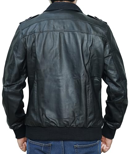 • REAL SHEEPSKIN LEATHER JACKET : Crafted from premium, durable sheepskin leather, this bomber leather jacket men offers natural insulation, weather resistance, and long-lasting wear. The sturdy leather material ensures that the mens aviator jacket not only withstands the elements but also maintains its rugged look for years to come.