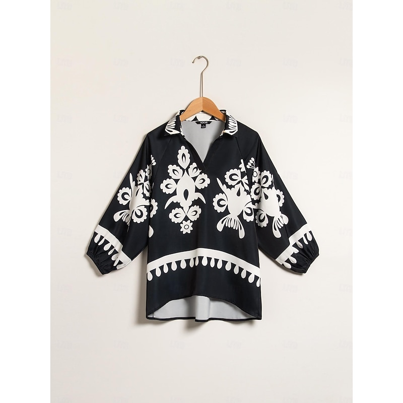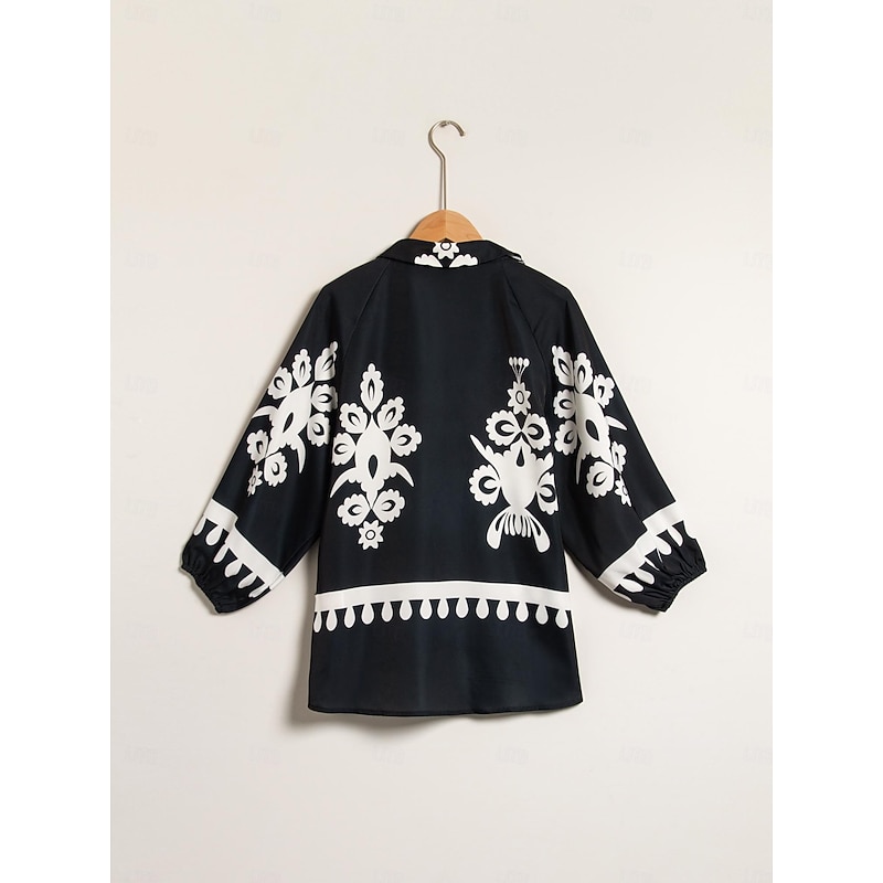 Satin Classic Print Lapel Straight Shirt Set 12