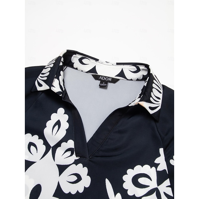 Satin Classic Print Lapel Straight Shirt Set 13