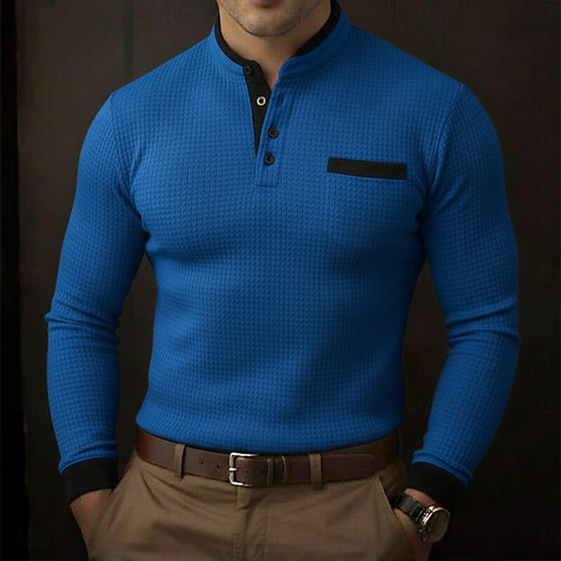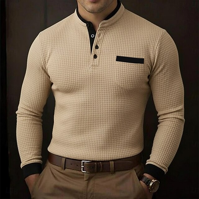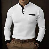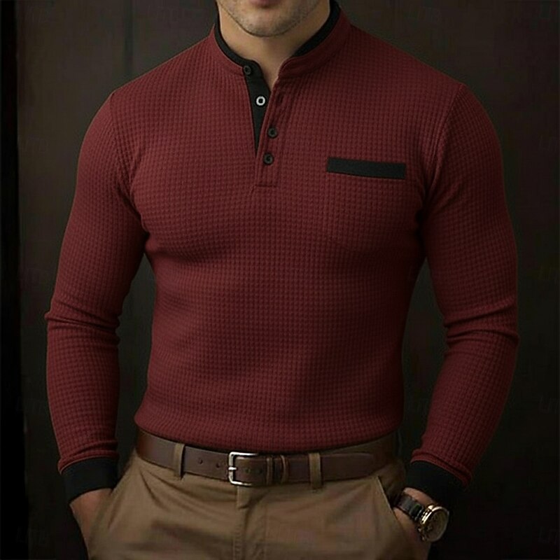 More information about Men's Golf Polos Shirts Waffle Knit Polo Shirt Business Casual Stand Collar Long Sleeve Fashion Basic Solid Color Color Block Knitting Fall Winter All Seasons Regular Fit White Burgundy Royal Blue