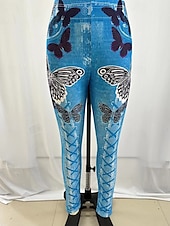 More information about Women's Slacks Leggings Cozy Leggings Streetwear Casual Full Length Natural Flower Print Comfy Outdoor Holiday Going out Wine Black Blue Sky Blue Fall Regular Fit