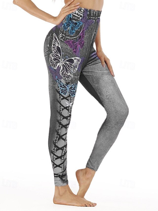 Women's Slacks Leggings Cozy Leggings Streetwear Casual Full Length Natural Flower Print Comfy Outdoor Holiday Going out Wine Black Blue Sky Blue Fall Regular Fit 10