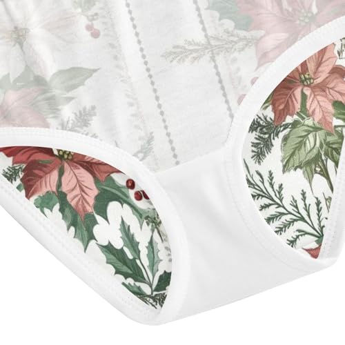 Soft Girls' Panties Organic Underpants for Toddlers Floral Poinsettia Border Christmas in Sizes 2T,3T, 4T, 5T, 6Y and 8Y 4