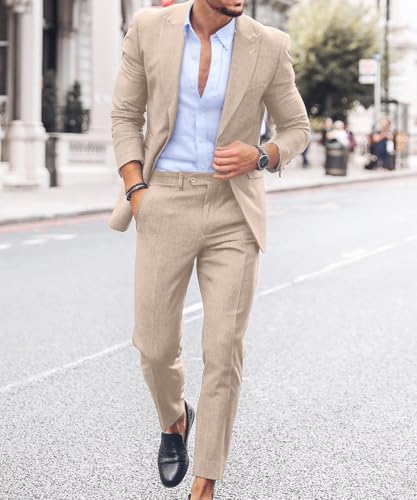 Linen Suits for Men 2 Piece Summer Beach Wedding Suit Set Jacket Pants for Casual Prom Bussiness 6