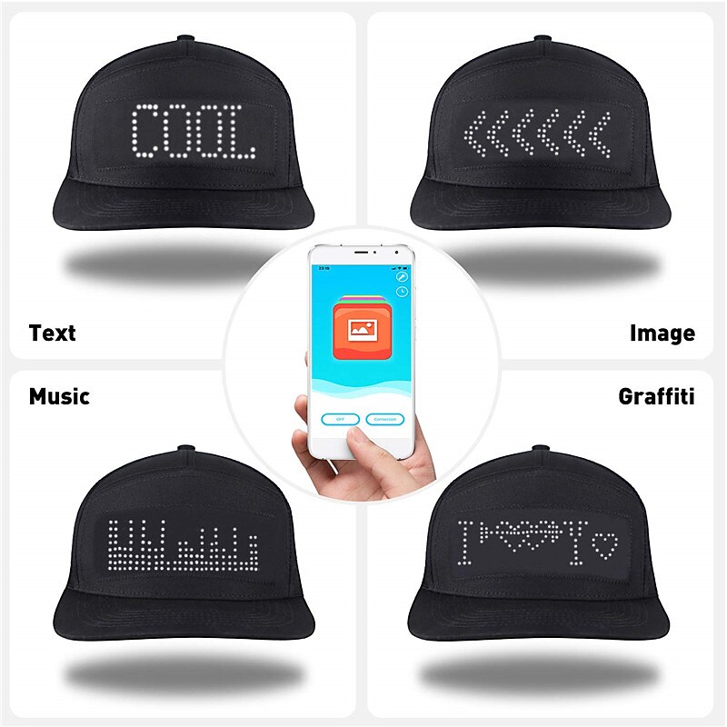 More information about LED Costume Hats LED Caps Display APP Programmable LED Message Display Hats Luminous Flashing Baseball Cap Cool Party Hat Messages Scrolling LED Hats And Caps