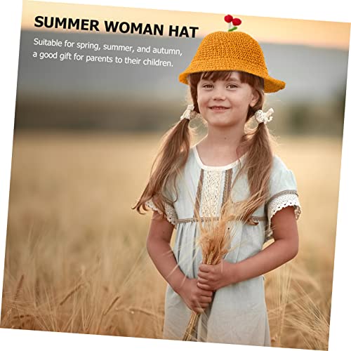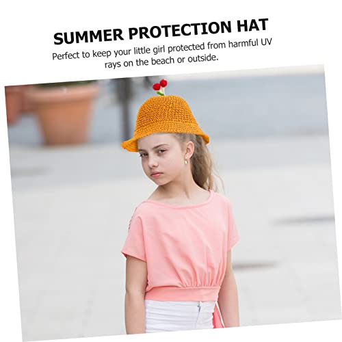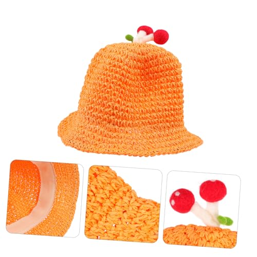 GALPADA Mushroom Straw Sun Protection Hat Breathable Summer Woven Cap for Boys Lightweight UV Blocking Beach Accessory Soft Material Outdoor Headwear Orange 3