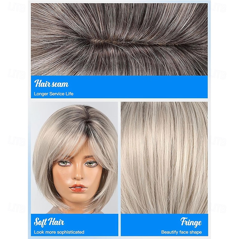 $21.99 - Bob Wigs for Women Synthetic Wig with Fringe Grey Color 2025. Shop for cheap Older Wigs online? Buy at lightinthebox.com on sale today!