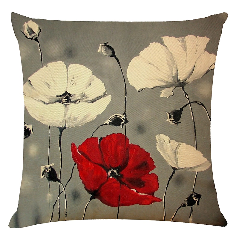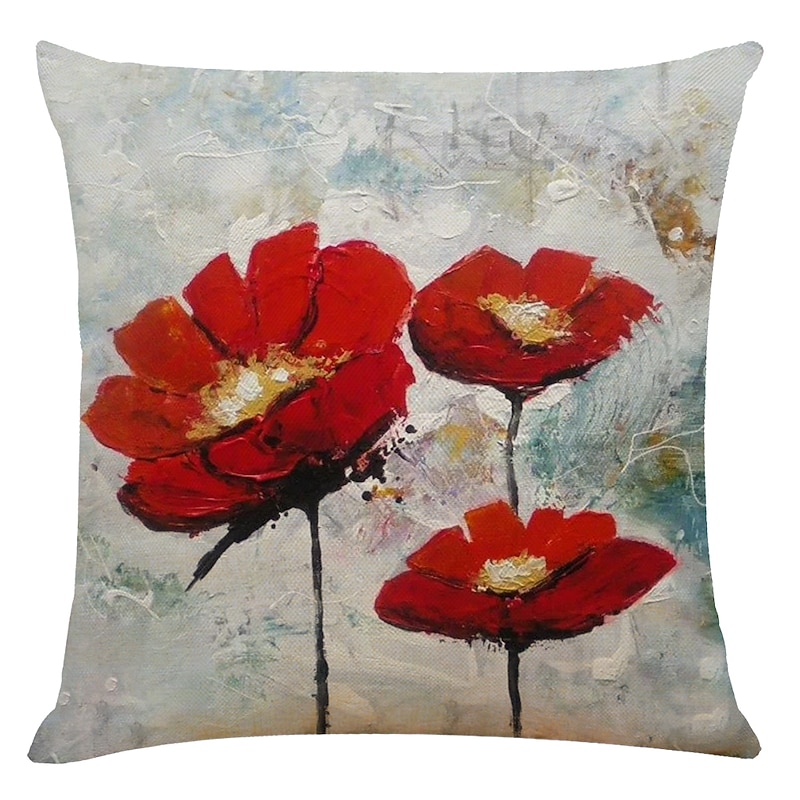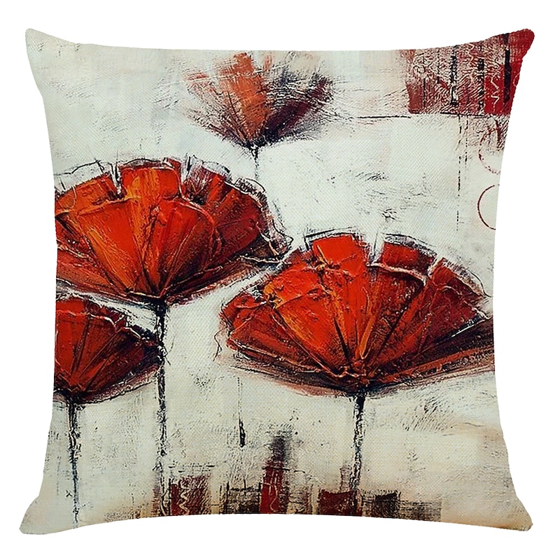 HOT ! Set of 4 Artistic Flowers Square Decorative Throw Pillow Cases Sofa Cushion Covers Home Sofa Decorative Faux Linen Cushion Cover for Sofa Couch Bed Chair Red