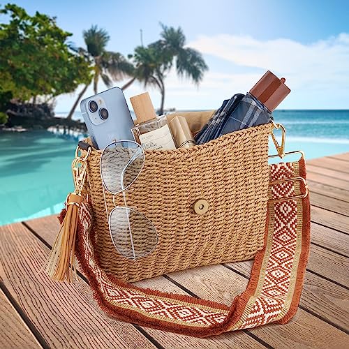 Women's Summer Straw Braided Crossbody Bag with Tassel Chain,Shoulder Straps Woven Beach Handbag Handmade Wallet Purse 6