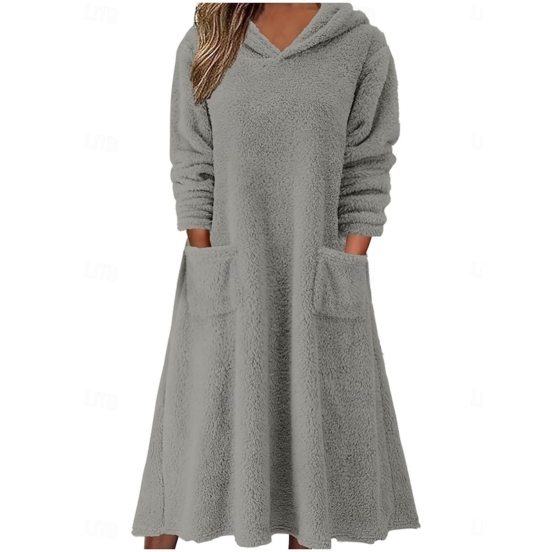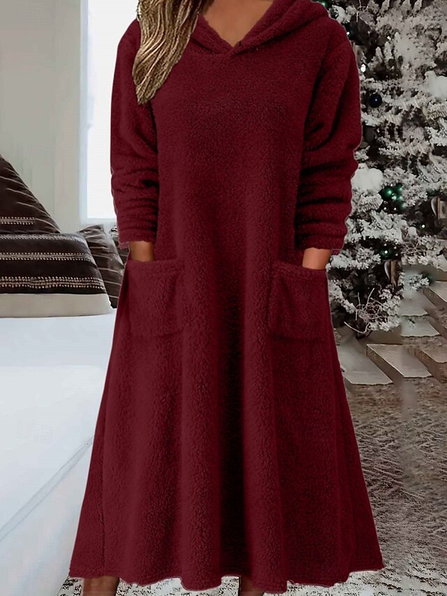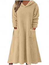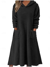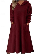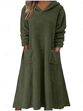 More information about Women's Midi Dress A Line Dress Fit And Flare Dress Casual Daily Loose Fit Plain Long Sleeve Hooded Black Wine Brown Army Green Fall Winter