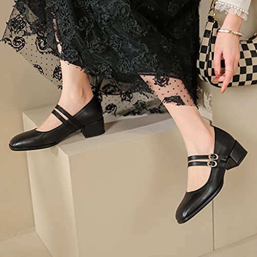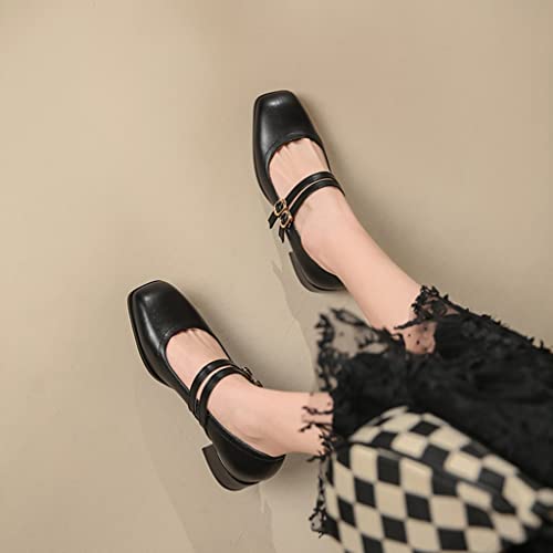 Women's Square Toe Ankle Strap Dress Pumps Leather Block Low Heel Work Office Uniform Mary Jane Shoes 6