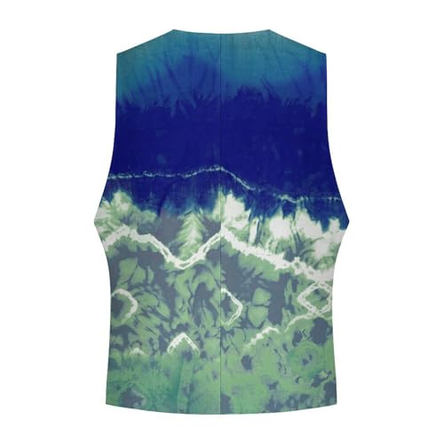 Blue And Green Tie-dye Men's Suit Vest Slim Fit V-Ncek Waistcoat Business Casual Vest 4