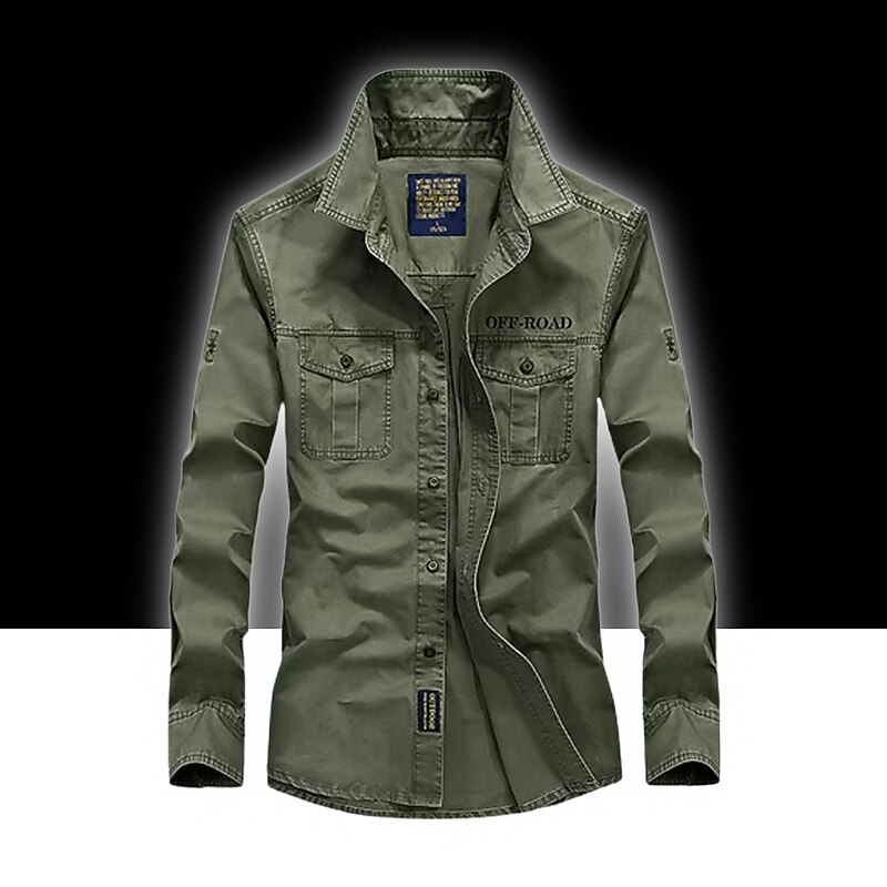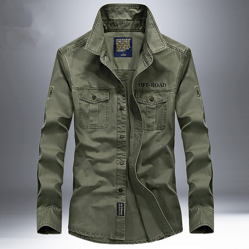 Men's Hiking Shirt / Button Down Shirts Long Sleeve Shirt Top Outdoor Ventilation Multi-Pockets Breathable Quick Dry Summer Classic Cotton Army Green Khaki Blue Camping / Hiking Hunting Fishing 10