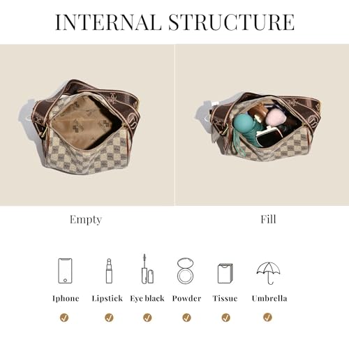 • 【Fashion Design Style】: This checkered crossbody bag is made of Vegan leather outside, and polyester inside,It is designed with checkered style and metal zippers which is fashionable, simple and has outstanding temperament.