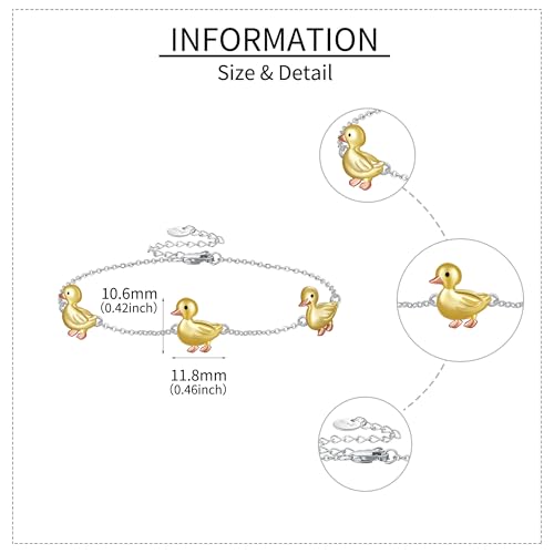 YAFEINI Duck Bracelet 925 Sterling Silver Cute Animal Mother's Day Jewelry for Women Mom 6