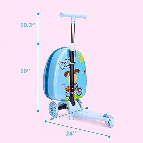 HOT ! Generic Kids Foldable Scooter Luggage, Scooter Suitcase with LED Lights, Puppy Pattern, Durable & Waterproof Exterior, Carry-On Size