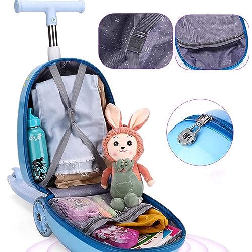 • 【Durable】: Scooter luggage for kids Sturdy, thick exterior is waterproof and scratch resistant and will not dent or scratch. Designed to deflect and absorb shock for long-lasting durability. Sturdy telescoping adjustable aluminum handle means it won't break or snag.