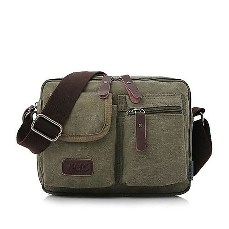 Men's Vintage Canvas Crossbody Messenger Bag, Multi-Pocket Shoulder Bag with Leather Accents for Travel and Casual Use 9