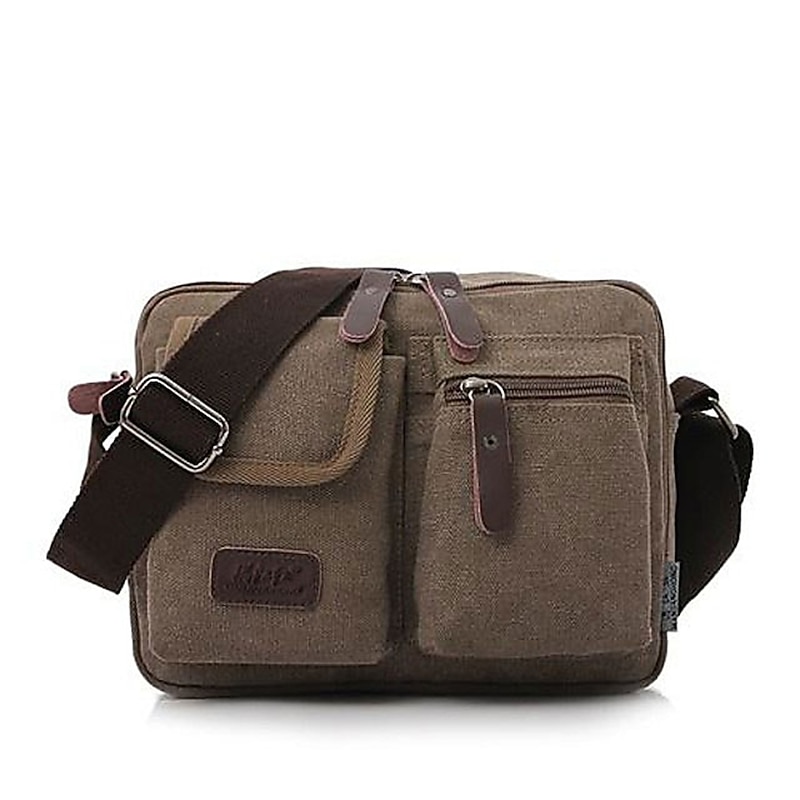 HOT ! Men's Vintage Canvas Crossbody Messenger Bag, Multi-Pocket Shoulder Bag with Leather Accents for Travel and Casual Use