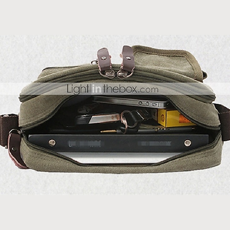 Men's Vintage Canvas Crossbody Messenger Bag, Multi-Pocket Shoulder Bag with Leather Accents for Travel and Casual Use 10