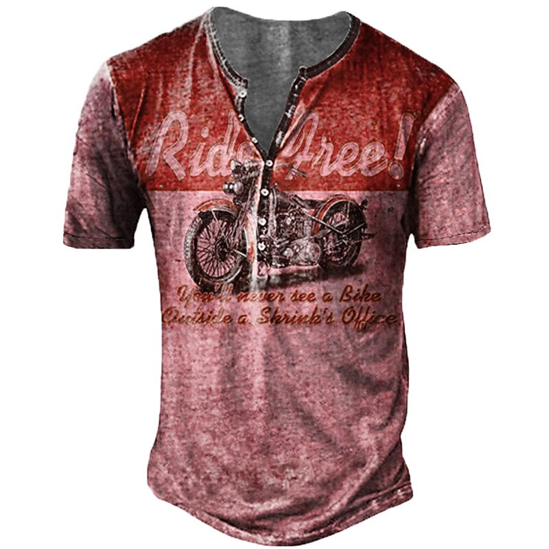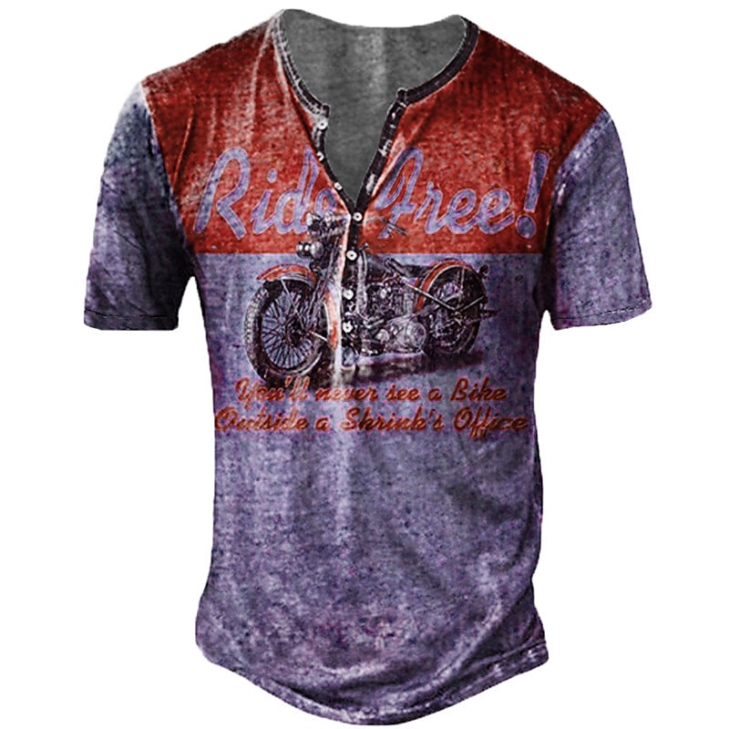 More information about Men's T shirt Tee Henley Shirt Tee Graphic Motorcycle Henley Blue red Red Blue Purple Green 3D Print Plus Size Outdoor Casual Short Sleeve Button-Down Print Clothing Apparel Designer Stylish Retro