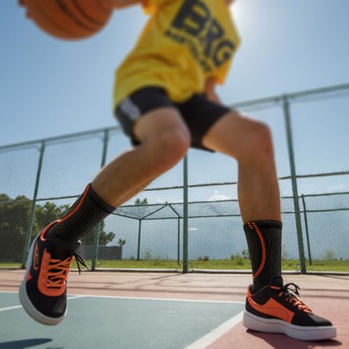 • Compression Basketball Socks--Spandex-blended yarns offer gentle compression to boost circulation, reducing fatigue during sports or all-day wear.