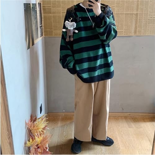 HOT ! Men's Striped Knitted Pullover Casual Color Block Slim Fit Sweater Crewneck Black Long Sleeve Patchwork Sweaters