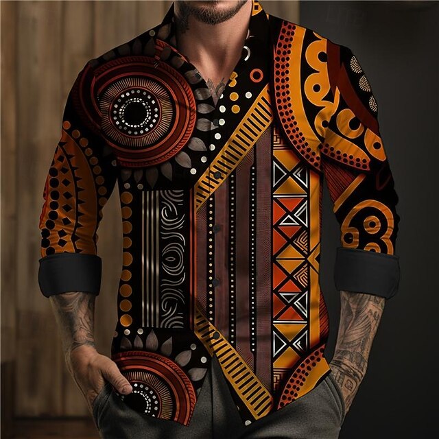 Highlights - Stay comfortable and stylish with this long sleeve Boho style shirt for men - Perfect for vacation or any casual occasion - Featuring a unique print design - Complete with a trendy turndown neckline