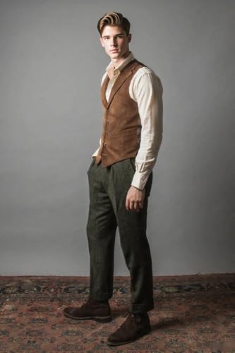 VENNYNG Men's Corduroy 3-Piece Suit Vintage Style Fall Wedding Suit Jacket Vest Pant Set Tailored Fit 7