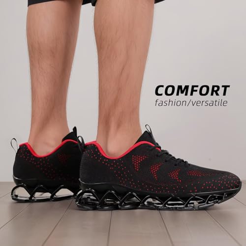 Mens Walking Shoes Blade Non Slip Fashion Sneakers Breathable Mesh Soft Sole Casual Athletic Running Sport Shoes Black/Red 2