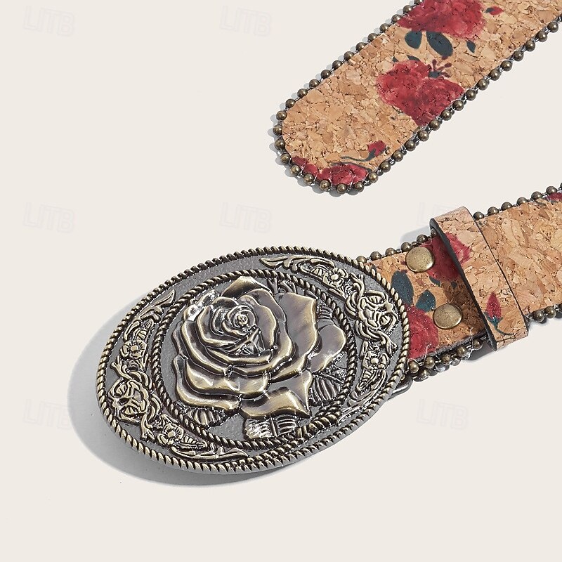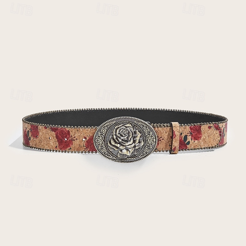 More information about Women's Belt PU Red Khaki Waist Belt Outdoor Holiday Floral