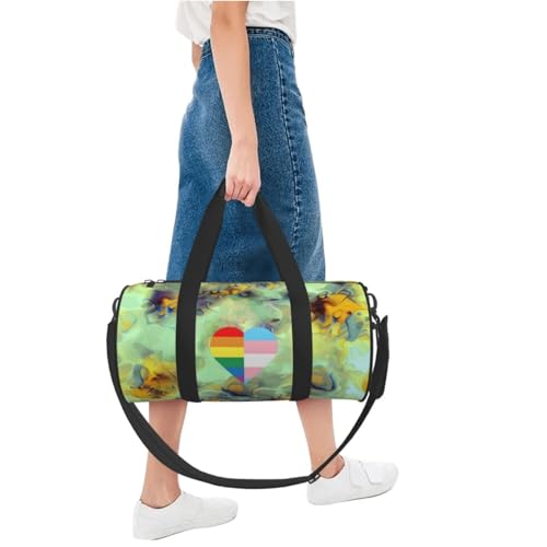 HOT ! LGBT Rainbow and Transgender Pride Flag Heart Convertible Garment Bag with Shoulder Strap, Carry on Garment Duffel Bag for Men Women - Rolling Foldable for Travel Luggage Bags (Black)