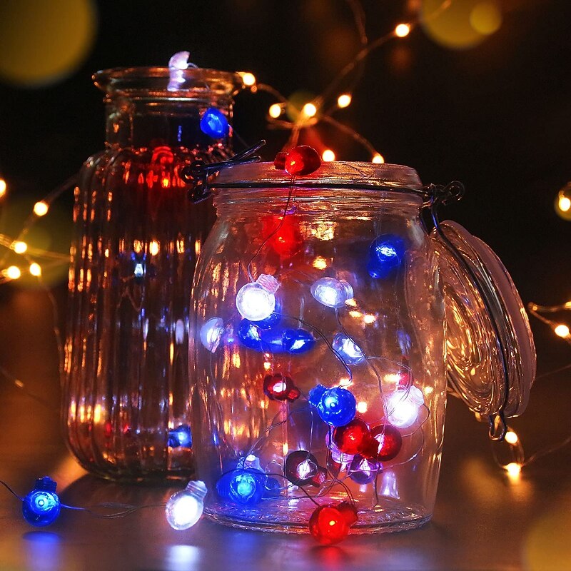 LED String Lights 4m/10Ft 40LED Decorations Red White Blue Fairy Light Battery Operated Copper Wire Patriotic Decorations 7